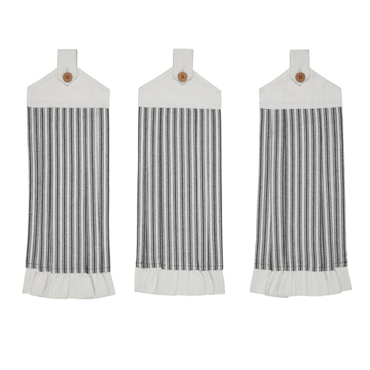 Sawyer Mill Black Ticking Stripe Button Loop Tea Towel